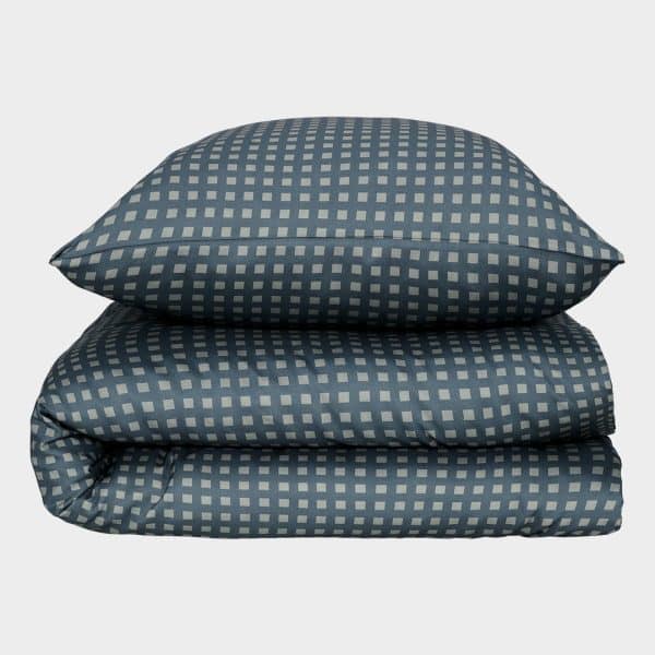 Nedtonet og lugtfrit grønt- og gråtternet bambus sengetøj 140×200 Vores bambus sengetøj i oliven/grålig blå ternet i størrelse 140×200 cm vil give dig følelsen af at ligge på en silkeblød sky, hver gang du skal sove. De nedtonede grå og olivenfarvede tern
