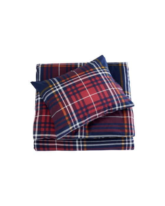 Verbier er et ternet dynebetræk i bomuld, der gør soveværelset lige så hyggeligt som en velindrettet skihytte i Alperne. Inspirationen til dynebetrækket kommer fra det eksklusive skisportssted Verbier i Schweiz. Det ternede mønster i rød og blå giver en varm og dejlig følelse, og kan fx bruges som interiør i din bjerghytte. Ekstra pudebetræk kan købes.4-dele – Sengesæt med enkelt dynebetræk2 styk 140 x 200 cm + 2 styk 60 x 63 cm
